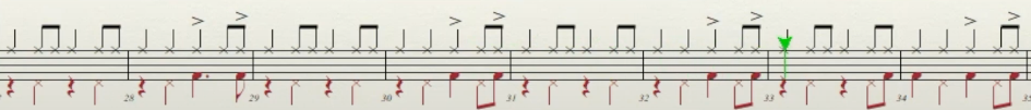 As the first two A sections develop, instruments are gradually added every 6-bar cycle, with each A section containing four cycles. In the 3rd cycle, an electric guitar with a dotted crotchet delay is introduced, strumming on the first beat of the 6/8 bar to provide rhythmic cohesion. This cycle also adds a syncopated synth. In the 4th cycle, drums enter, with the snare on beat 2 of the 6/8 bars and beat 4 of the 5/8 bar, treating this bar as a grouping of 3 + 2. Additionally, a synth plays mostly on downbeats, and a rhythmically complex syncopated guitar part experiments with groupings of 3 and 2. In terms of melodic devices, bars 103 to 107 feature the clavinet solo’s melody being pre-emptively superimposed a semitone higher, creating anticipation for the upcoming A section. Harmonically, the clavinet solo in bars 96 to 100 features intervals of fourths jumping around and often moving non-diatonically as they chromatically approach their succeeding notes.
